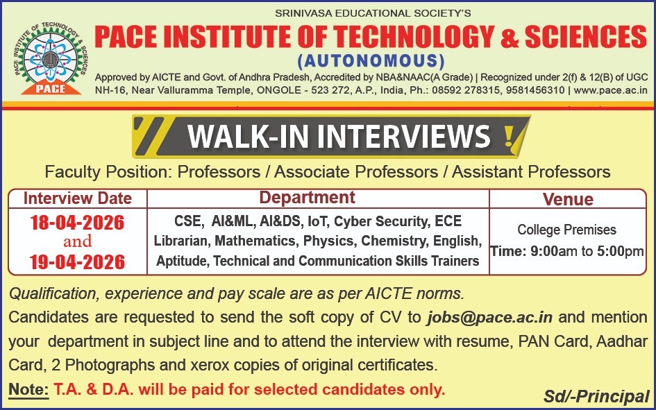 Email : jobs@pace.ac.in